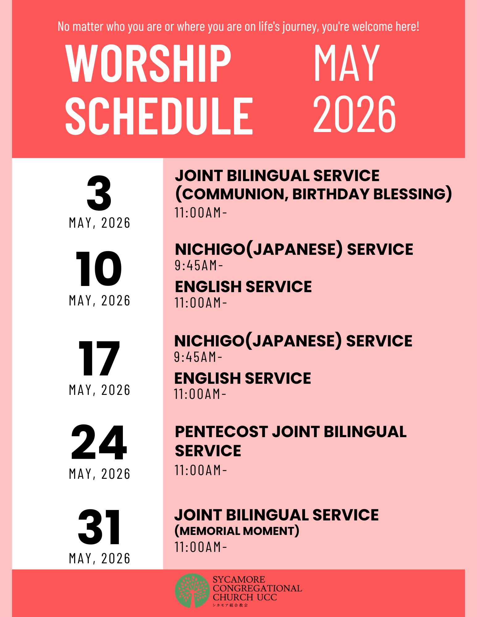 Japanese Language worship Sunday at 9:45am.